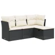 vidaXL Vrtna sedežna garnitura 4-delna z blazinami črna poli ratan