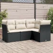 vidaXL Vrtna sedežna garnitura 4-delna z blazinami črna poli ratan