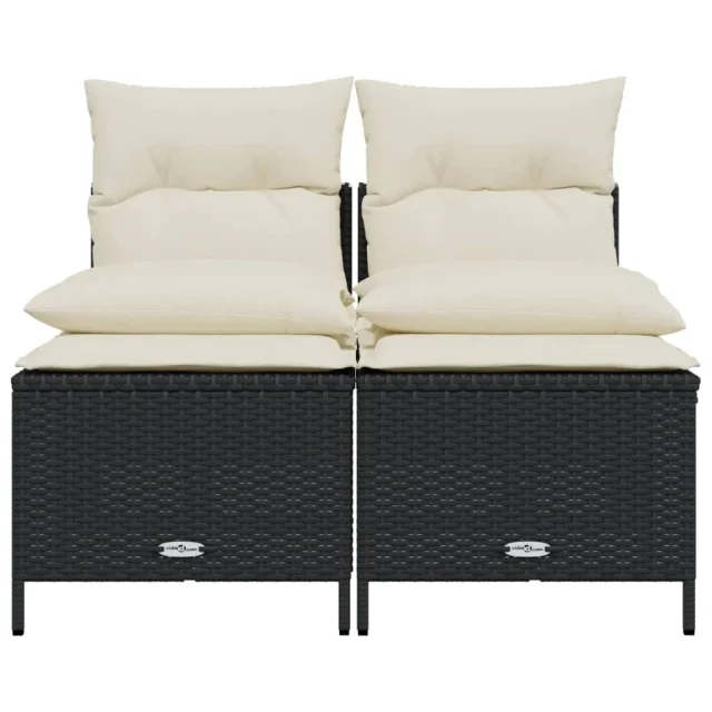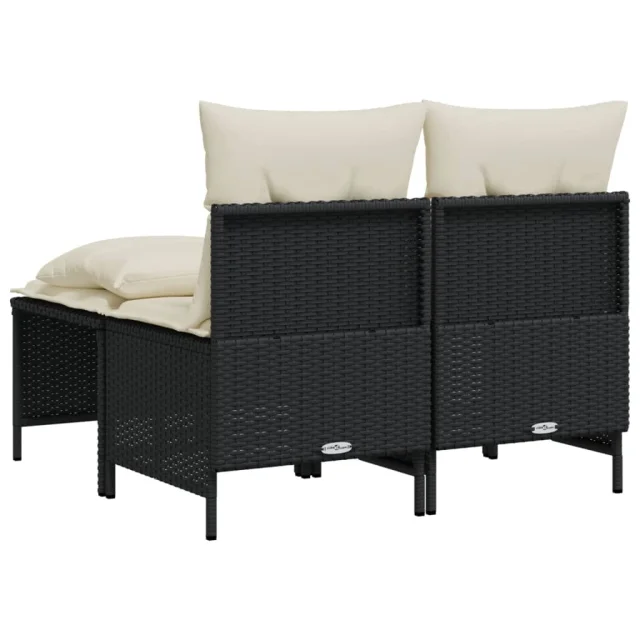 vidaXL Vrtna sedežna garnitura 4-delna z blazinami črna poli ratan
