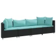 vidaXL Vrtna sedežna garnitura 4-delna z blazinami črna poli ratan