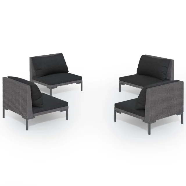 vidaXL Vrtna sedežna garnitura 4-delna z blazinami PE ratan temno siva