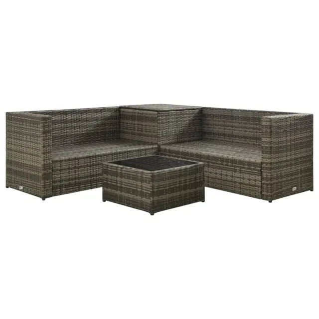 vidaXL Vrtna sedežna garnitura 4-delna z blazinami poli ratan siva