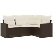 vidaXL Vrtna sedežna garnitura 4-delna z blazinami rjav poli ratan