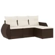 vidaXL Vrtna sedežna garnitura 4-delna z blazinami rjav poli ratan