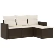 vidaXL Vrtna sedežna garnitura 4-delna z blazinami rjav poli ratan