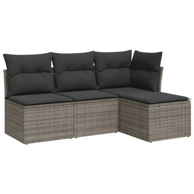 vidaXL Vrtna sedežna garnitura 4-delna z blazinami siv poli ratan