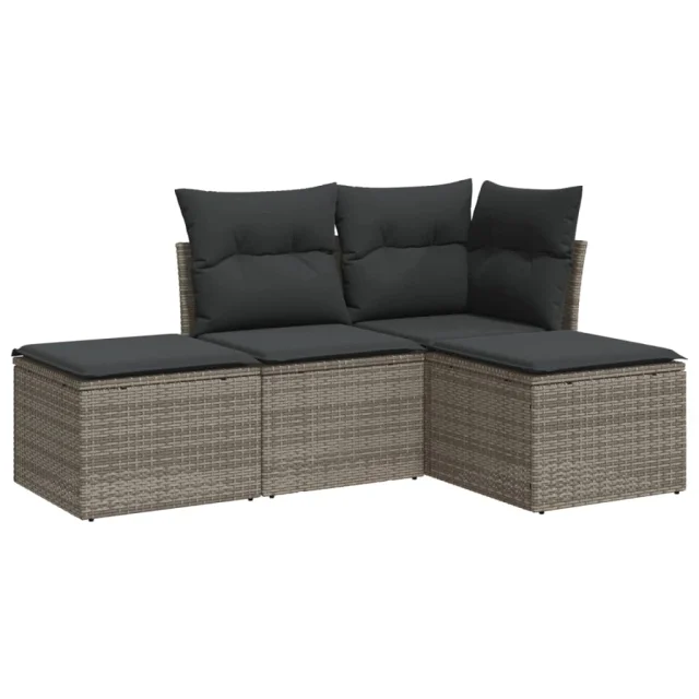 vidaXL Vrtna sedežna garnitura 4-delna z blazinami siv poli ratan