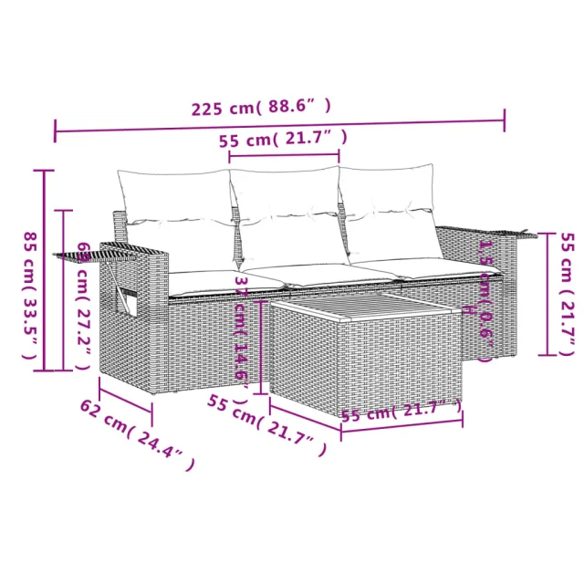 vidaXL Vrtna sedežna garnitura 4-delna z blazinami siv poli ratan