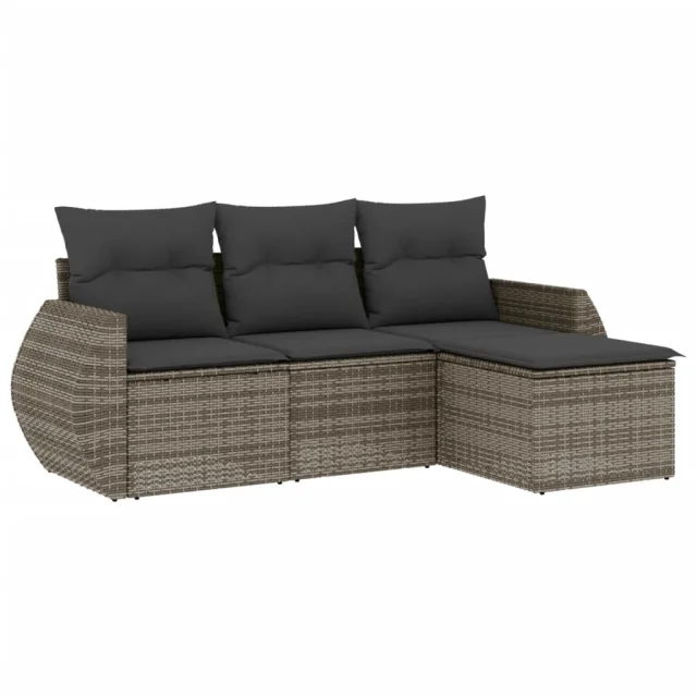 vidaXL Vrtna sedežna garnitura 4-delna z blazinami siv poli ratan