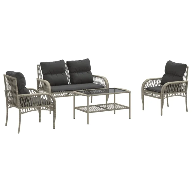 vidaXL Vrtna sedežna garnitura 4-delna z blazinami siv poli ratan