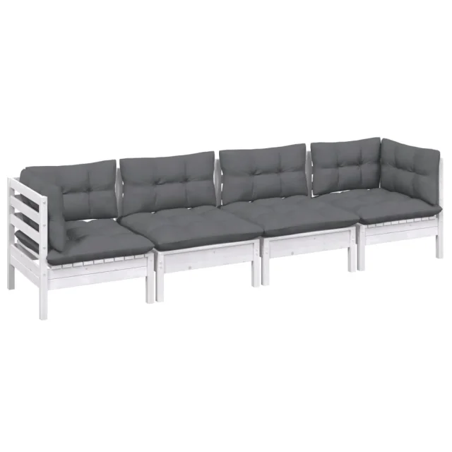 vidaXL Vrtna sedežna garnitura 4-delna z blazinami trdna borovina