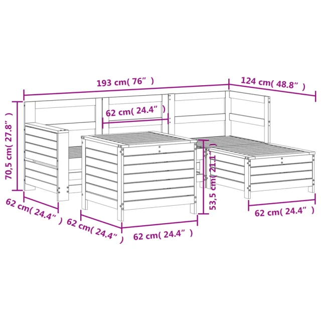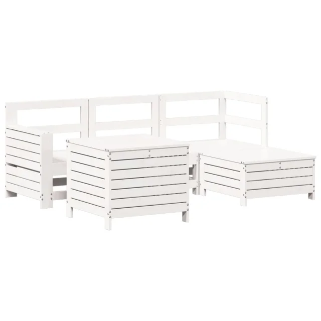 vidaXL Vrtna sedežna garnitura 5-delna bela trdna borovina