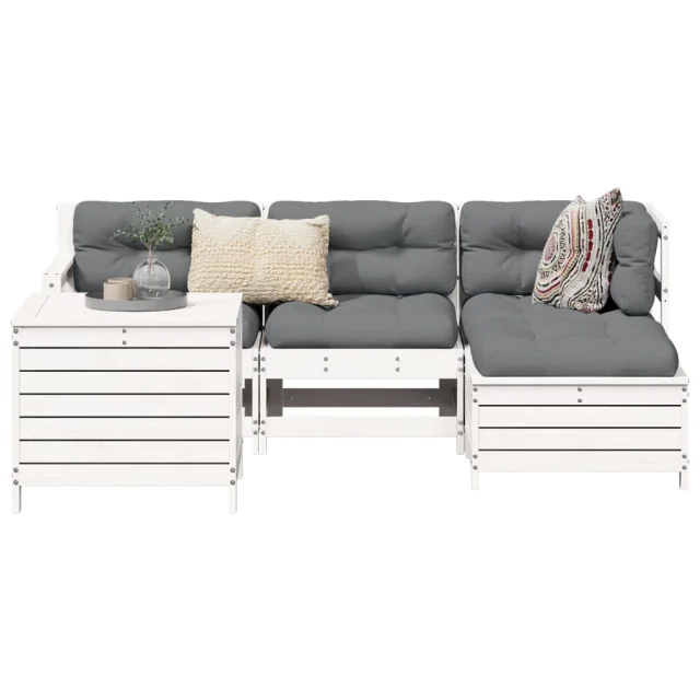 vidaXL Vrtna sedežna garnitura 5-delna bela trdna borovina