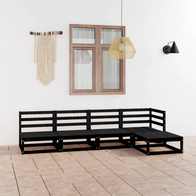 vidaXL Vrtna sedežna garnitura 5-delna črna trdna borovina