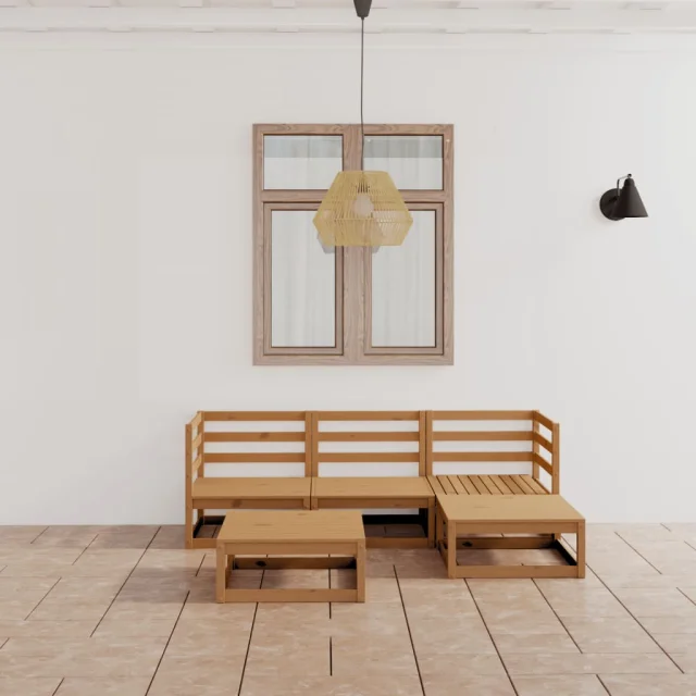 vidaXL Vrtna sedežna garnitura 5-delna medeno rjava trdna borovina