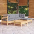 vidaXL Vrtna sedežna garnitura 5-delna s sivimi blazinami borovina