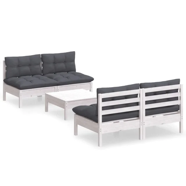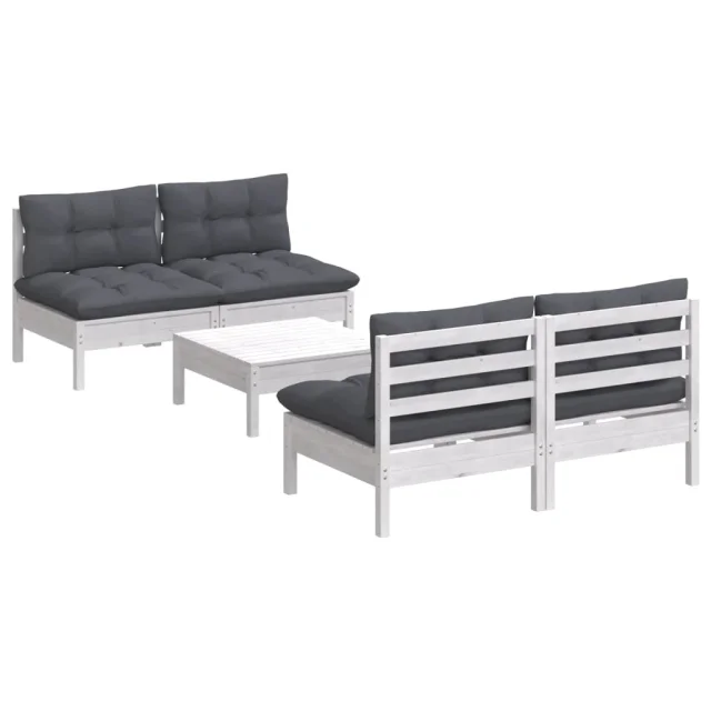 vidaXL Vrtna sedežna garnitura 5-delna z antracit blazinami borovina