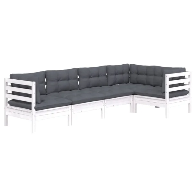 vidaXL Vrtna sedežna garnitura 5-delna z blazinami bela borovina