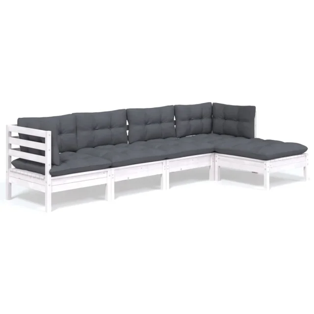 vidaXL Vrtna sedežna garnitura 5-delna z blazinami bela borovina
