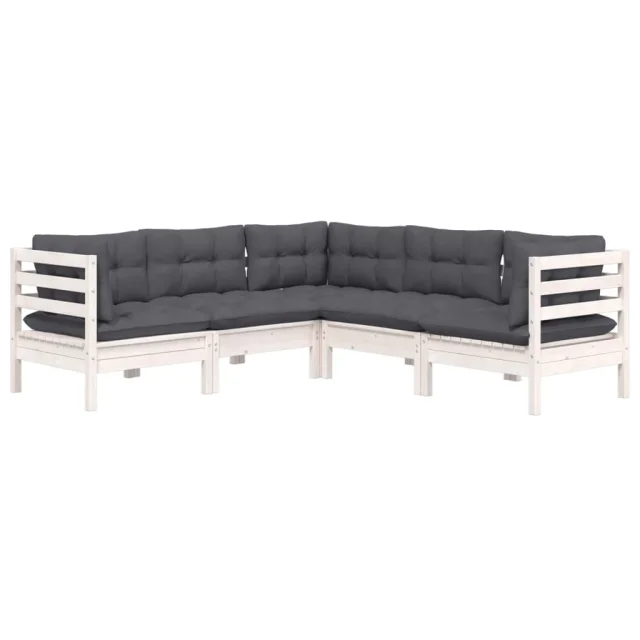 vidaXL Vrtna sedežna garnitura 5-delna z blazinami bela trdna borovina