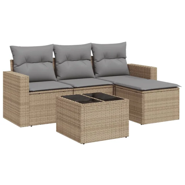 vidaXL Vrtna sedežna garnitura 5-delna z blazinami bež poli ratan