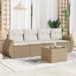vidaXL Vrtna sedežna garnitura 5-delna z blazinami bež poli ratan