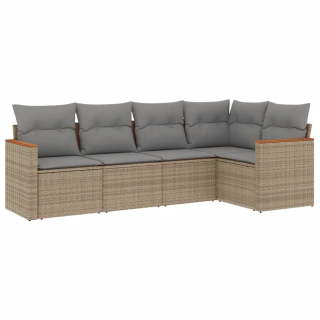 vidaXL Vrtna sedežna garnitura 5-delna z blazinami bež poli ratan