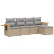 vidaXL Vrtna sedežna garnitura 5-delna z blazinami bež poli ratan