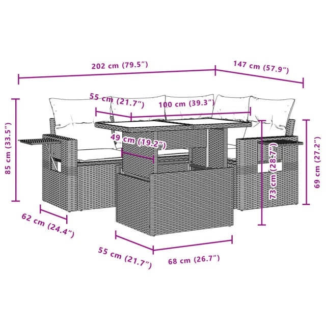 vidaXL Vrtna sedežna garnitura 5-delna z blazinami bež poli ratan