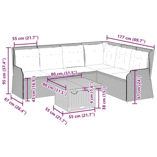 vidaXL Vrtna sedežna garnitura 5-delna z blazinami bež poli ratan