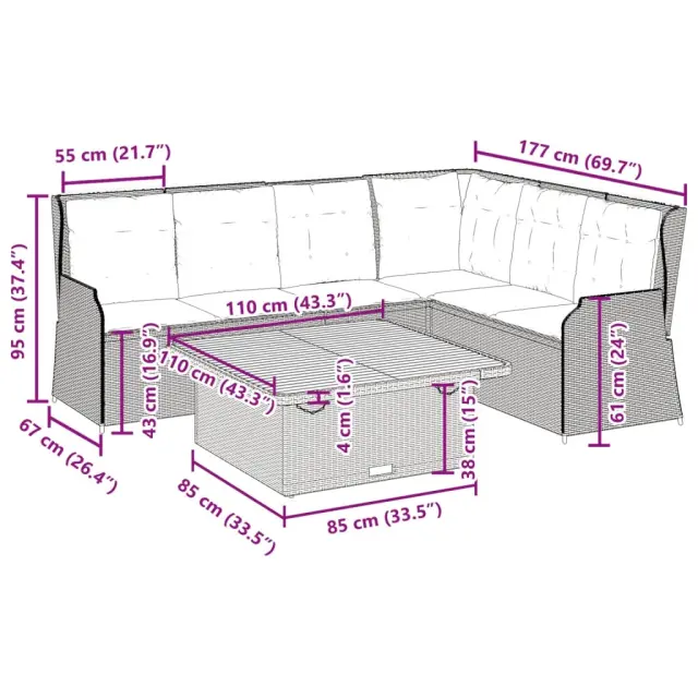 vidaXL Vrtna sedežna garnitura 5-delna z blazinami bež poli ratan
