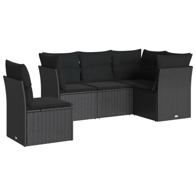 vidaXL Vrtna sedežna garnitura 5-delna z blazinami črn poli ratan