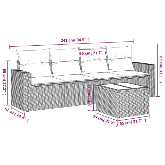 vidaXL Vrtna sedežna garnitura 5-delna z blazinami črn poli ratan