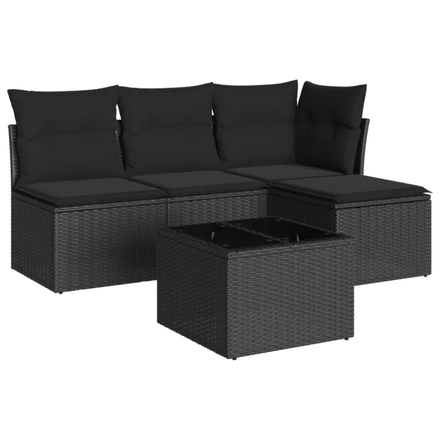 vidaXL Vrtna sedežna garnitura 5-delna z blazinami črn poli ratan