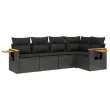 vidaXL Vrtna sedežna garnitura 5-delna z blazinami črn poli ratan