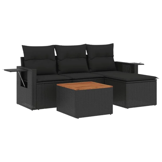 vidaXL Vrtna sedežna garnitura 5-delna z blazinami črn poli ratan