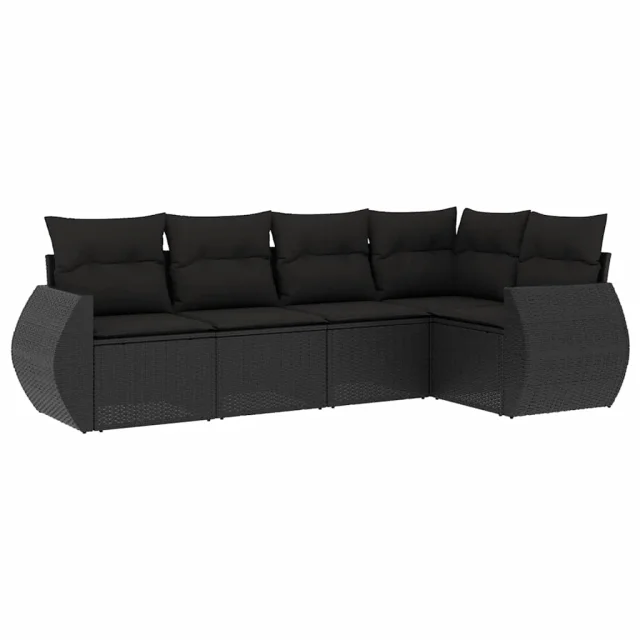 vidaXL Vrtna sedežna garnitura 5-delna z blazinami črn poli ratan
