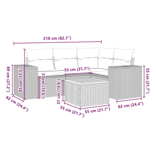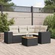 vidaXL Vrtna sedežna garnitura 5-delna z blazinami črn poli ratan