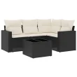 vidaXL Vrtna sedežna garnitura 5-delna z blazinami črn poli ratan