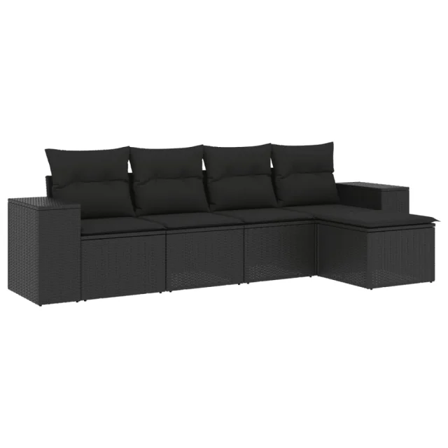 vidaXL Vrtna sedežna garnitura 5-delna z blazinami črn poli ratan