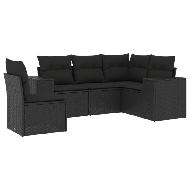 vidaXL Vrtna sedežna garnitura 5-delna z blazinami črn poli ratan