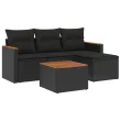 vidaXL Vrtna sedežna garnitura 5-delna z blazinami črn poli ratan