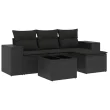 vidaXL Vrtna sedežna garnitura 5-delna z blazinami črn poli ratan