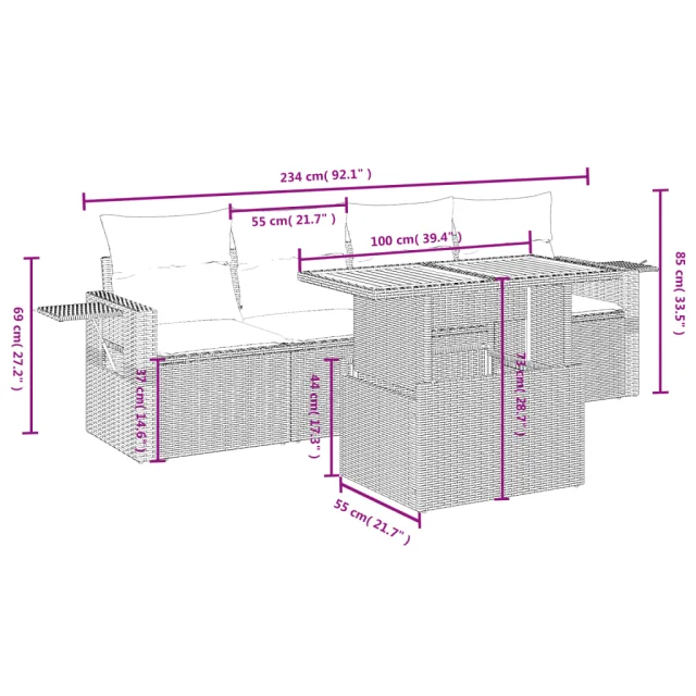 vidaXL Vrtna sedežna garnitura 5-delna z blazinami črn poli ratan