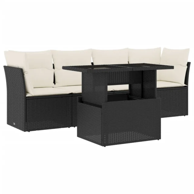 vidaXL Vrtna sedežna garnitura 5-delna z blazinami črn poli ratan