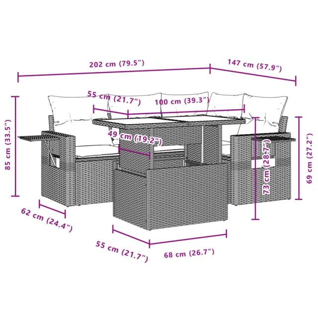 vidaXL Vrtna sedežna garnitura 5-delna z blazinami črn poli ratan