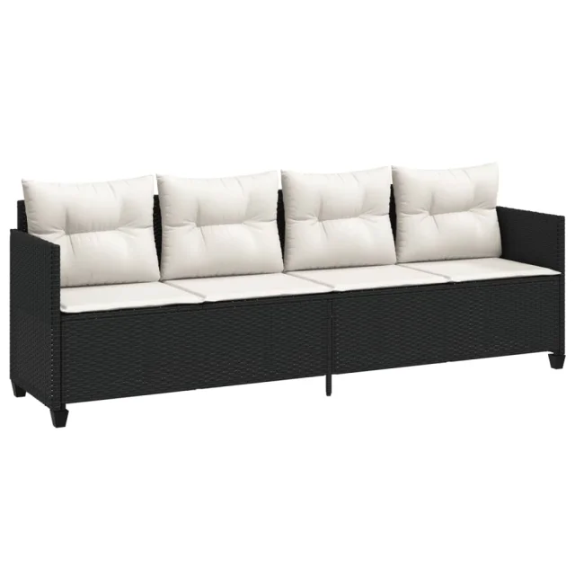 vidaXL Vrtna sedežna garnitura 5-delna z blazinami črn poli ratan