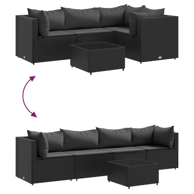 vidaXL Vrtna sedežna garnitura 5-delna z blazinami črn poli ratan