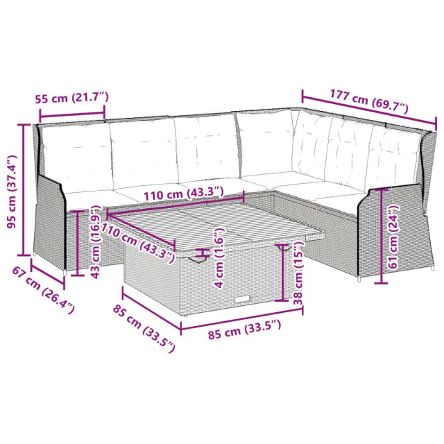 vidaXL Vrtna sedežna garnitura 5-delna z blazinami črn poli ratan