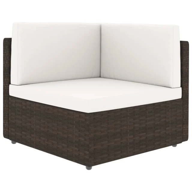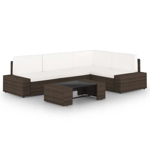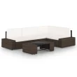 vidaXL Vrtna sedežna garnitura 5-delna z blazinami rjav poli ratan